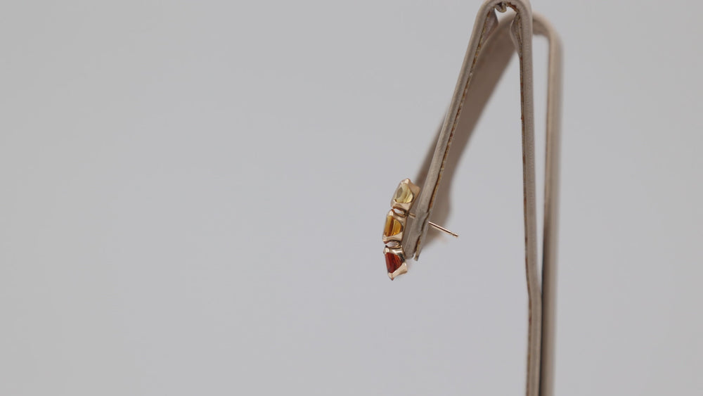 • A refined twist on classic yellow-gold studs, the three-tone design adds dimension and modern appeal without overwhelming the stone.