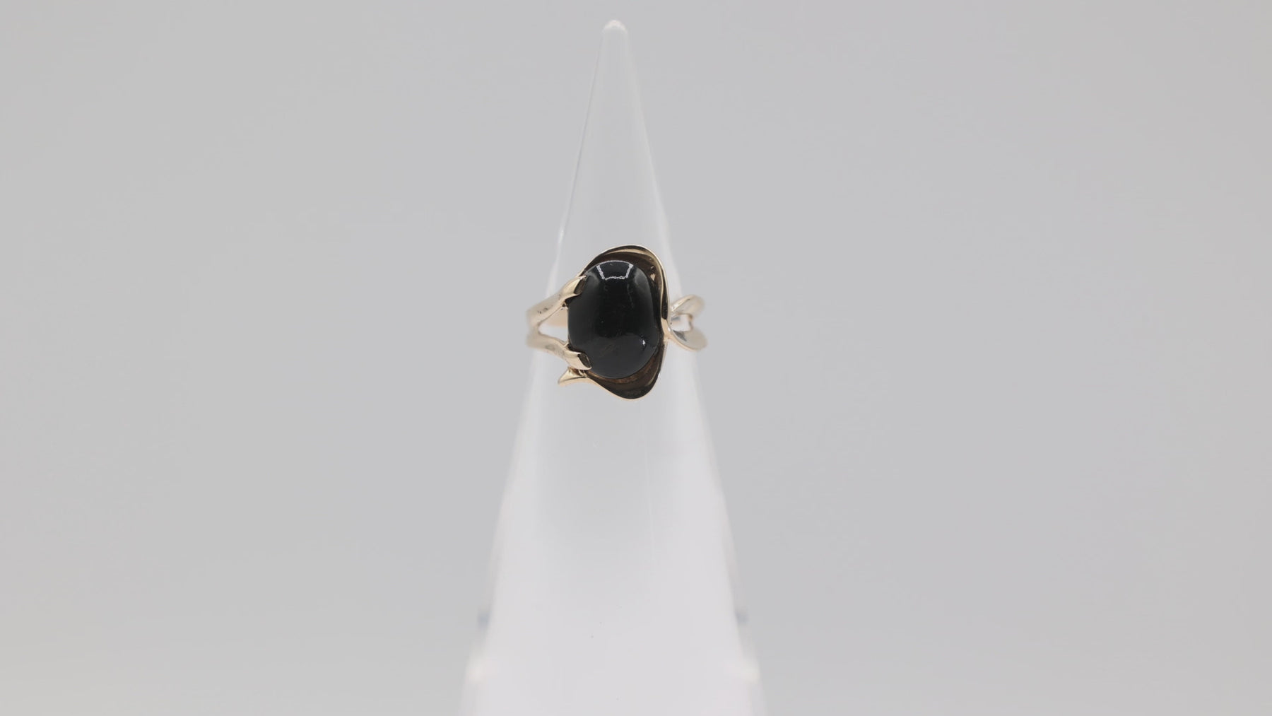 10K Yellow Gold Black Onyx Ring — 12x8mm Center Stone, Size 5.5