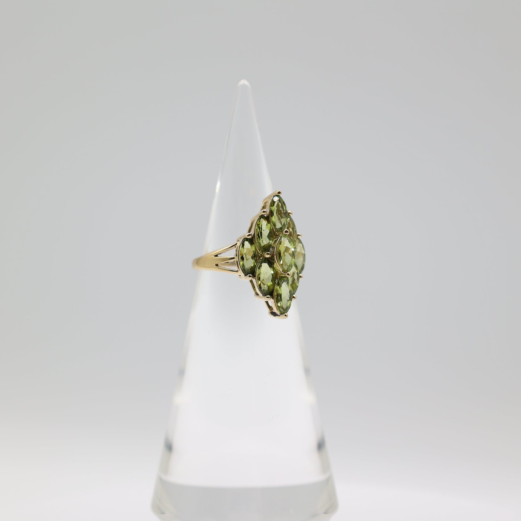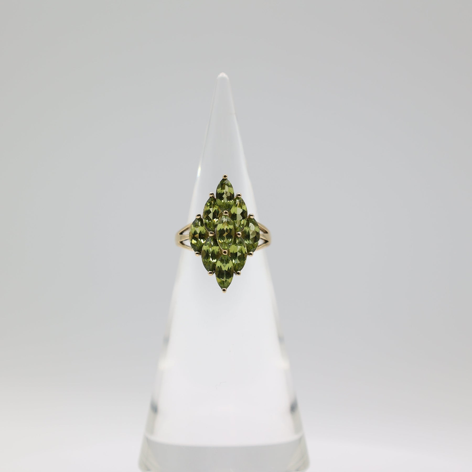 10K Yellow Gold Marquise Peridot Cluster Ring Size 8.75