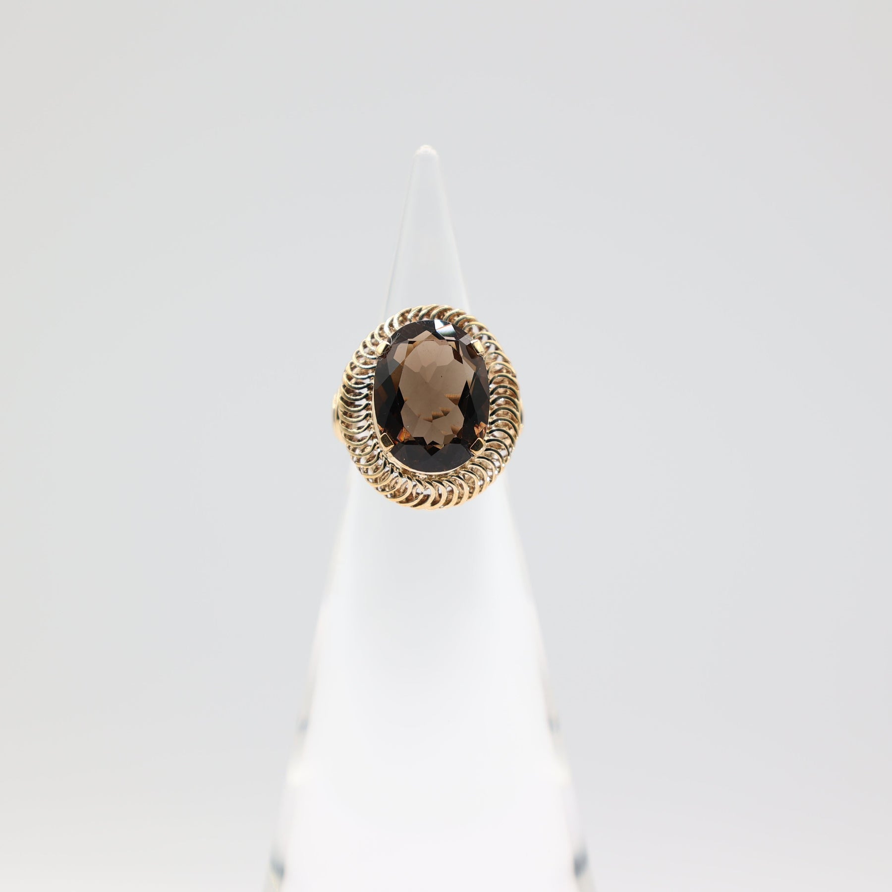 10K Yellow Gold Smokey Quartz Statement Stone 16x12mm