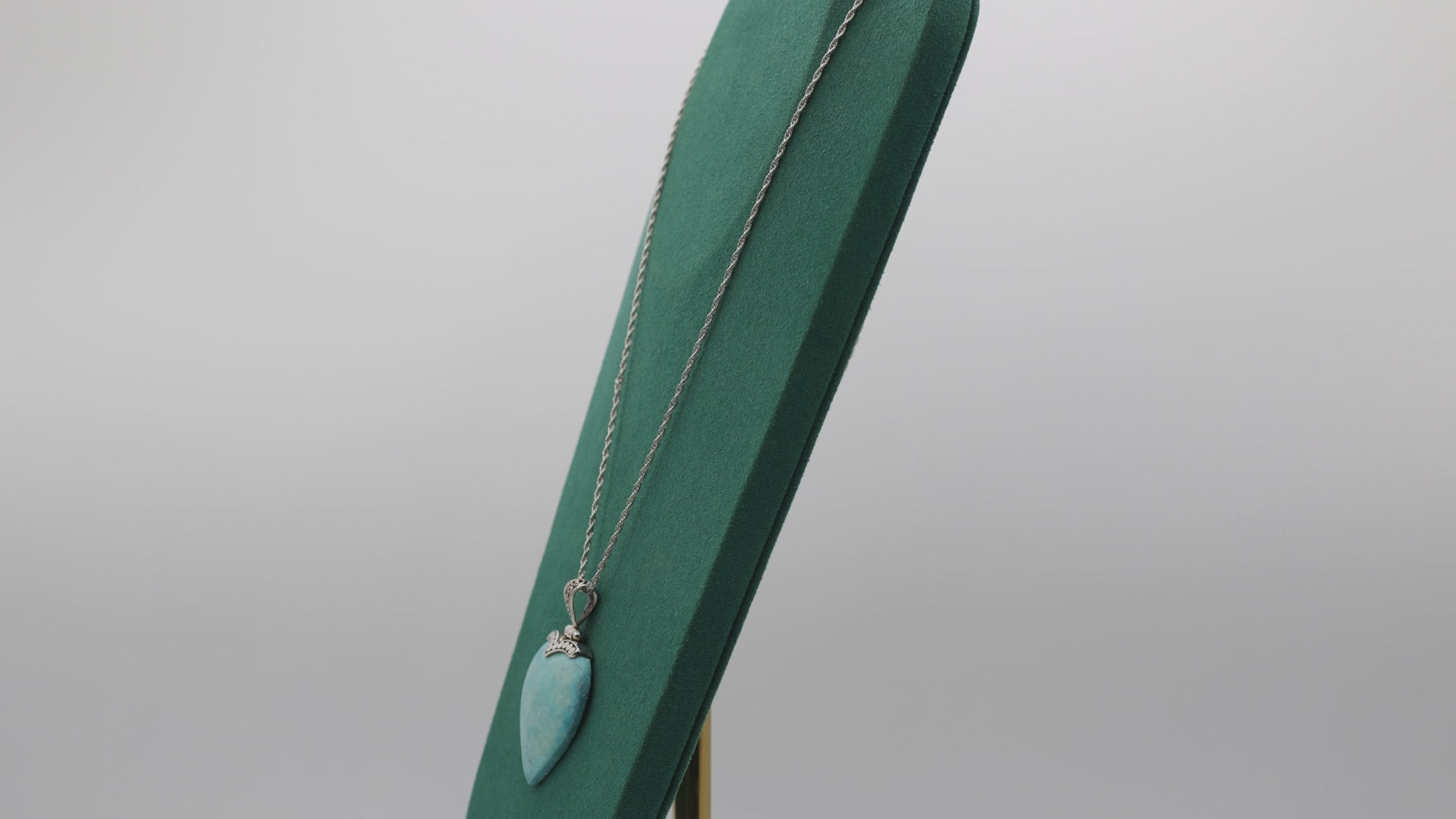 From Annie McConnell's Renewed Elegance, this sterling silver pendant blends two striking gemstones—Larimar and Turquoise—for a calm, coastal-inspired look. The unique blue hues and natural veining make each piece subtly one-of-a-kind.
