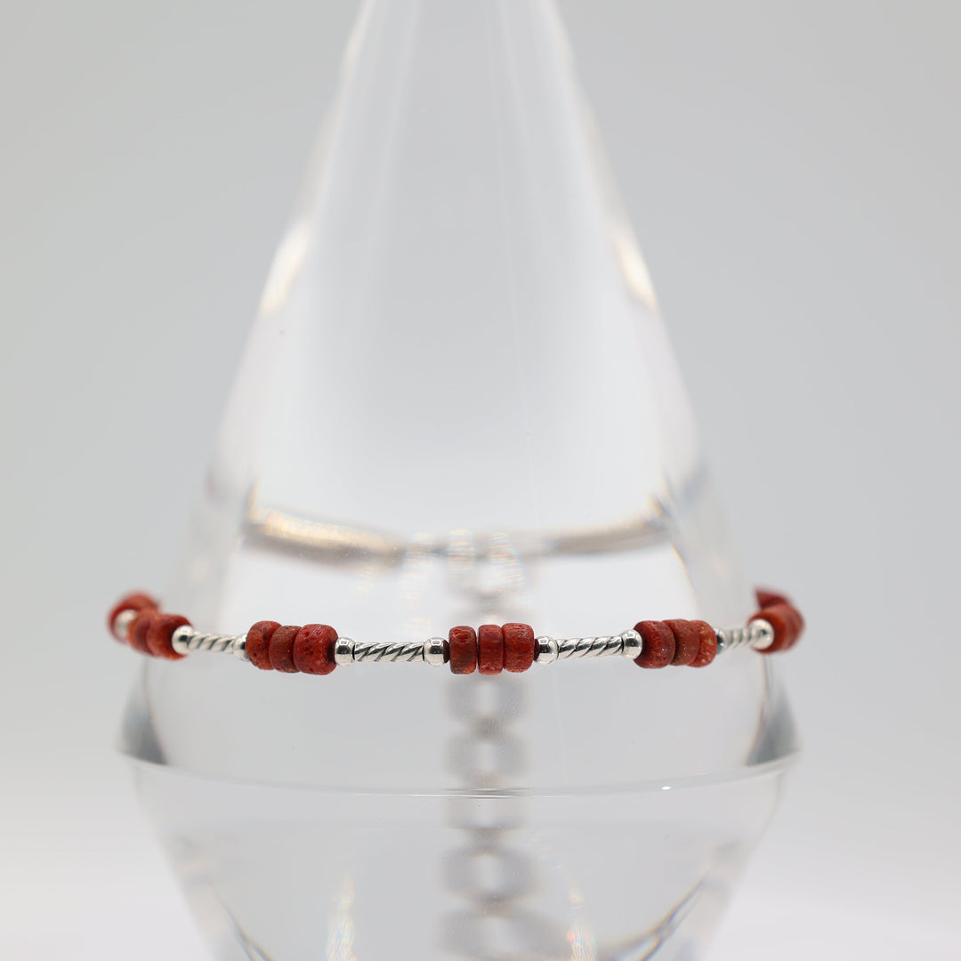 925 Sterling Silver Beaded Coral 10 Inch Anklet