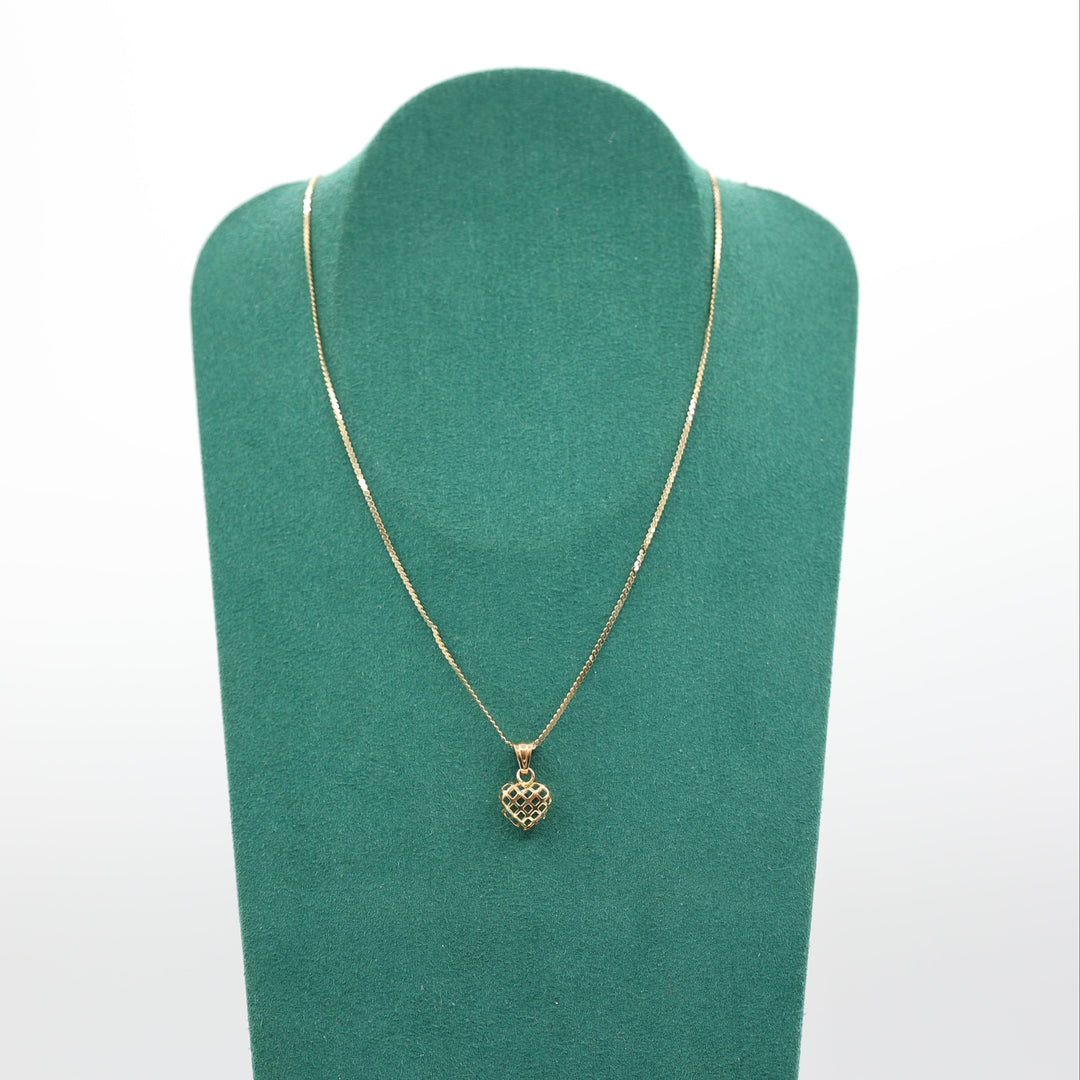 14k Yellow Gold 15 Inch Chain with 18k Gold Open Netted Heart Pendant Necklace