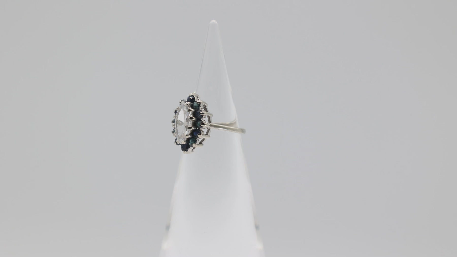 Unlike typical single-stone designs, this piece balances a vivid blue sapphire centerpiece with a luminous halo of CZ accents. The marquise cut adds a refined, elongated silhouette that enhances the finger’s natural lines, while the white gold setting provides a cool, contemporary contrast that makes the blue pop. The result is a ring that feels both classic and current, suitable for gifting or treating yourself without feeling overbearing.