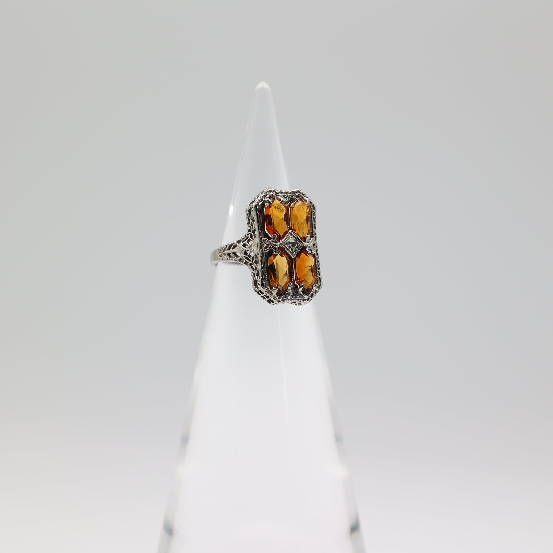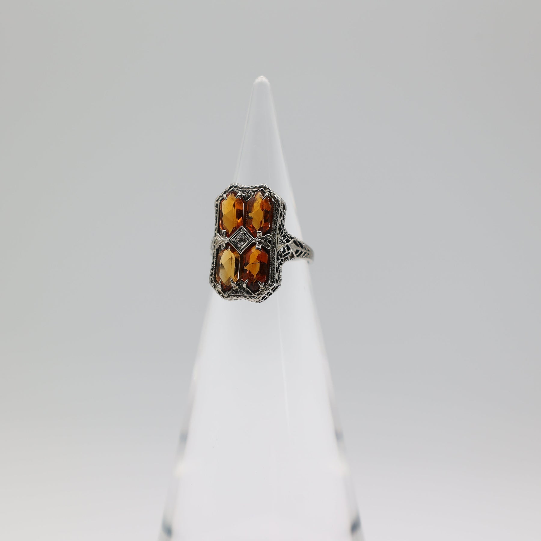 14K White Gold Citrine Filigree Ring With 4mm Stones Size 5