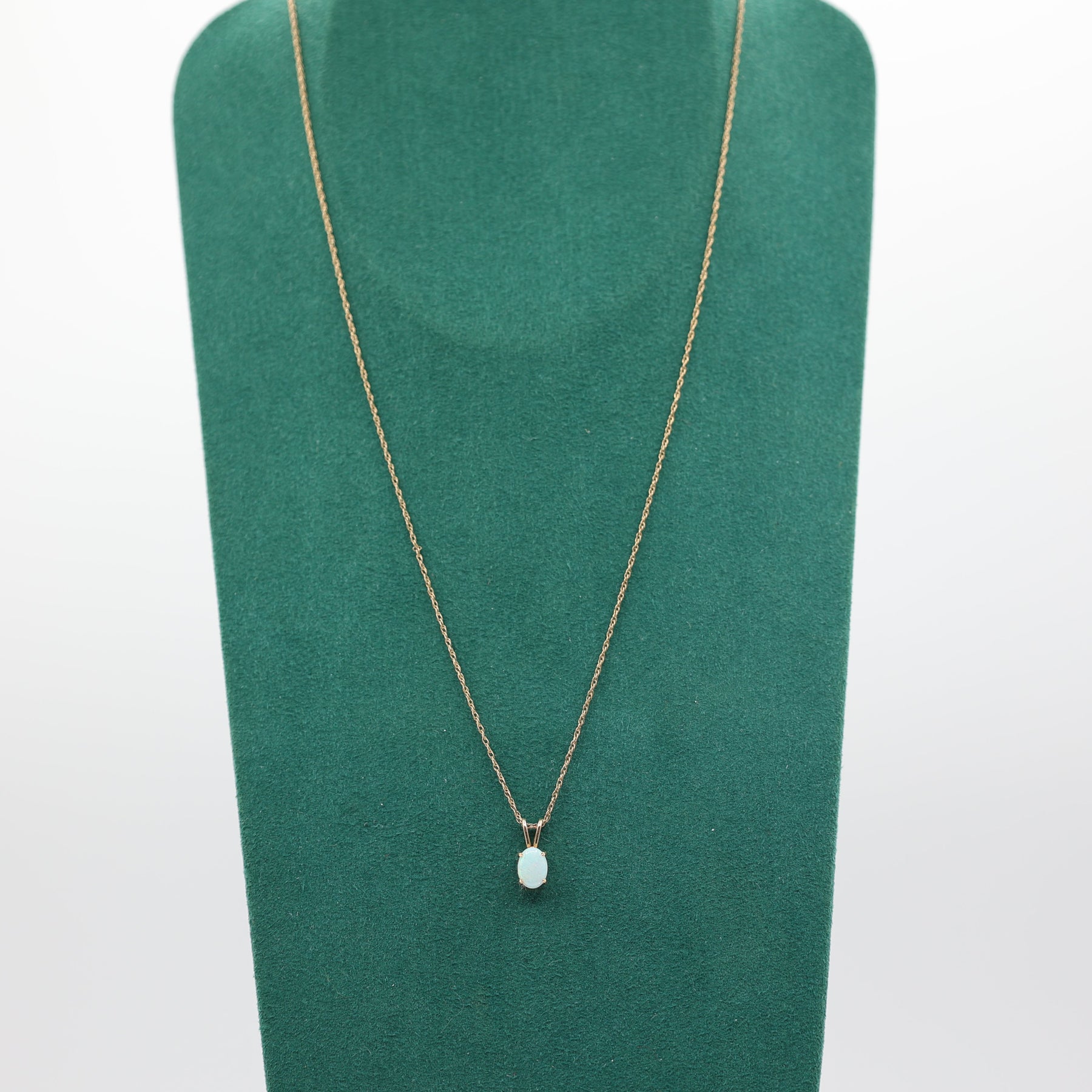 14k Yellow Gold 18.5 Inch Chain With 7x5mm Opal Stone Pendant Necklace