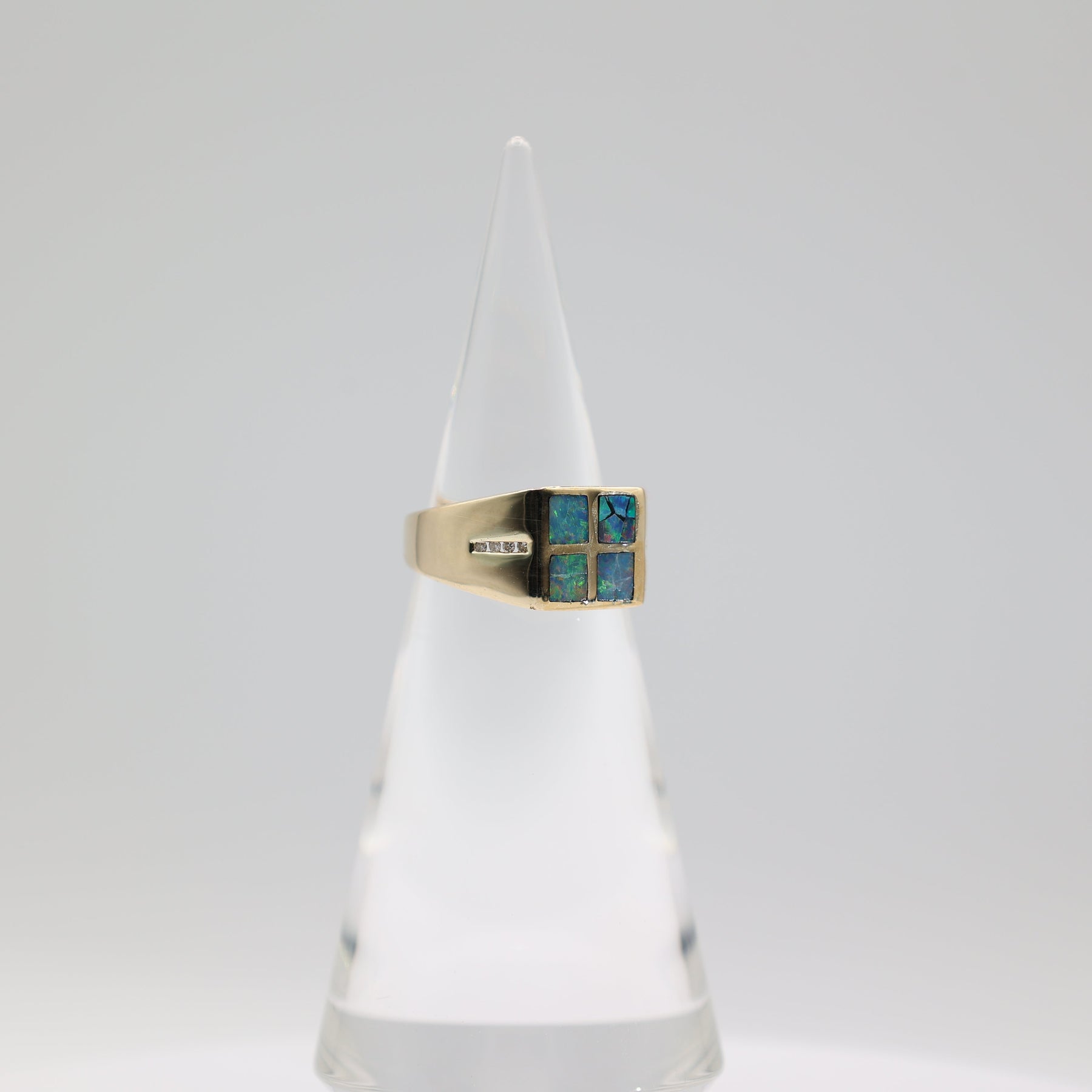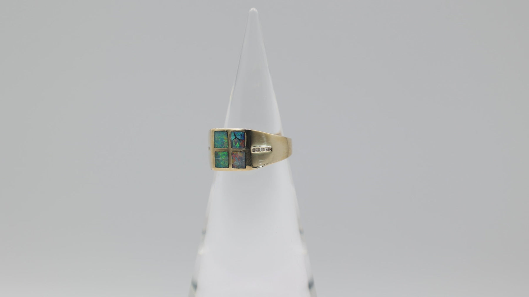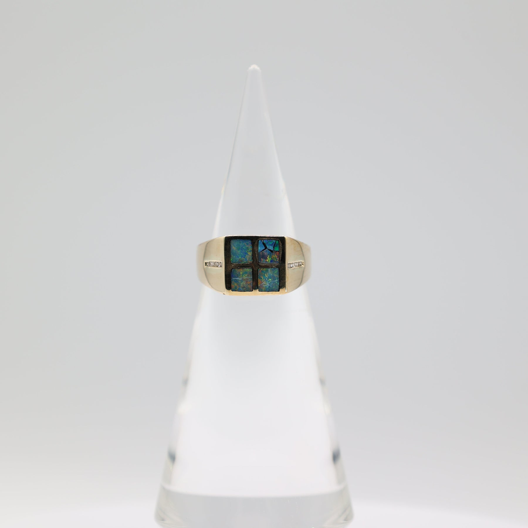 14K Yellow Gold Ring With Four Square Opals And White Diamonds – Size 9.75