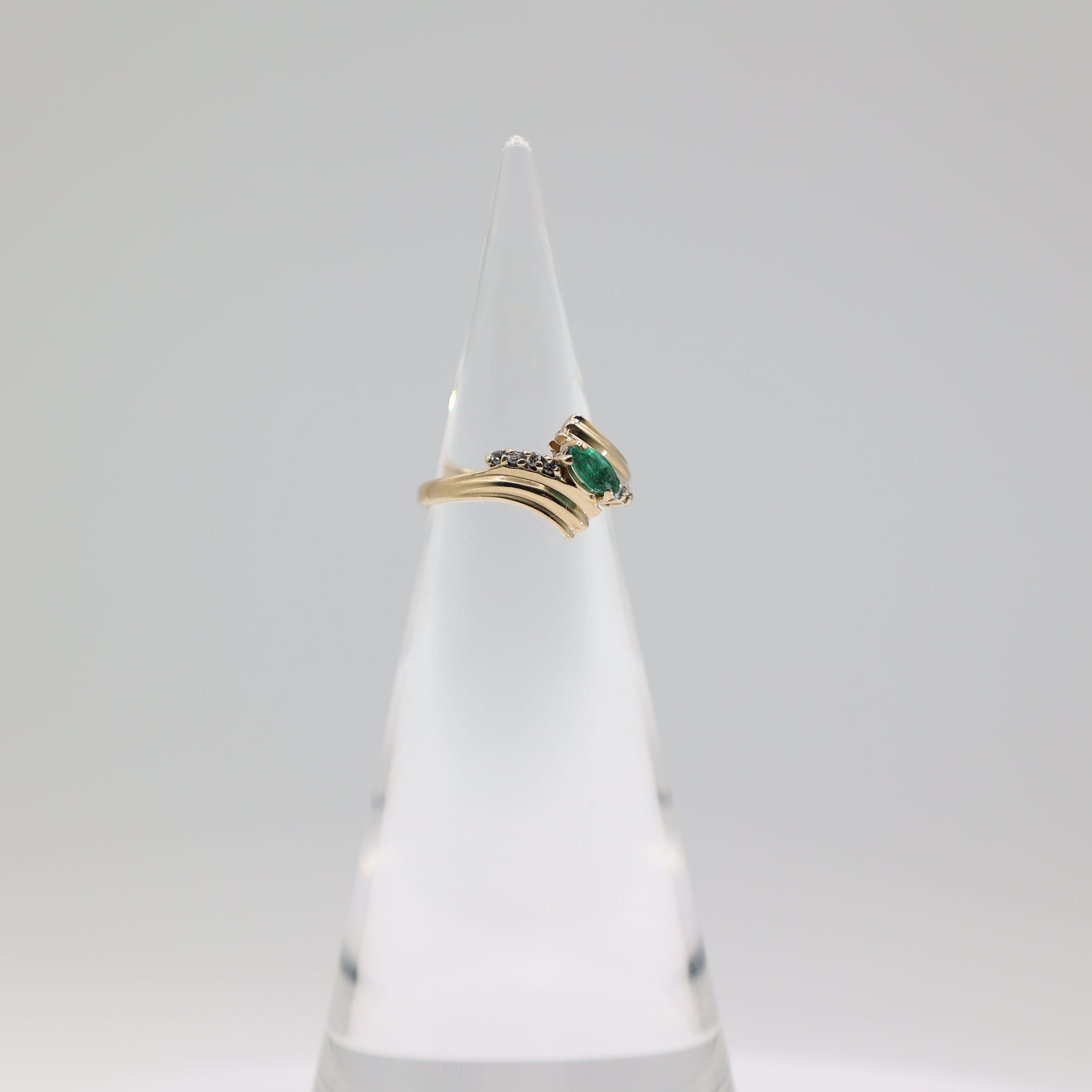 14K Yellow Gold Emerald Ring With Diamond Accents Size 5.75