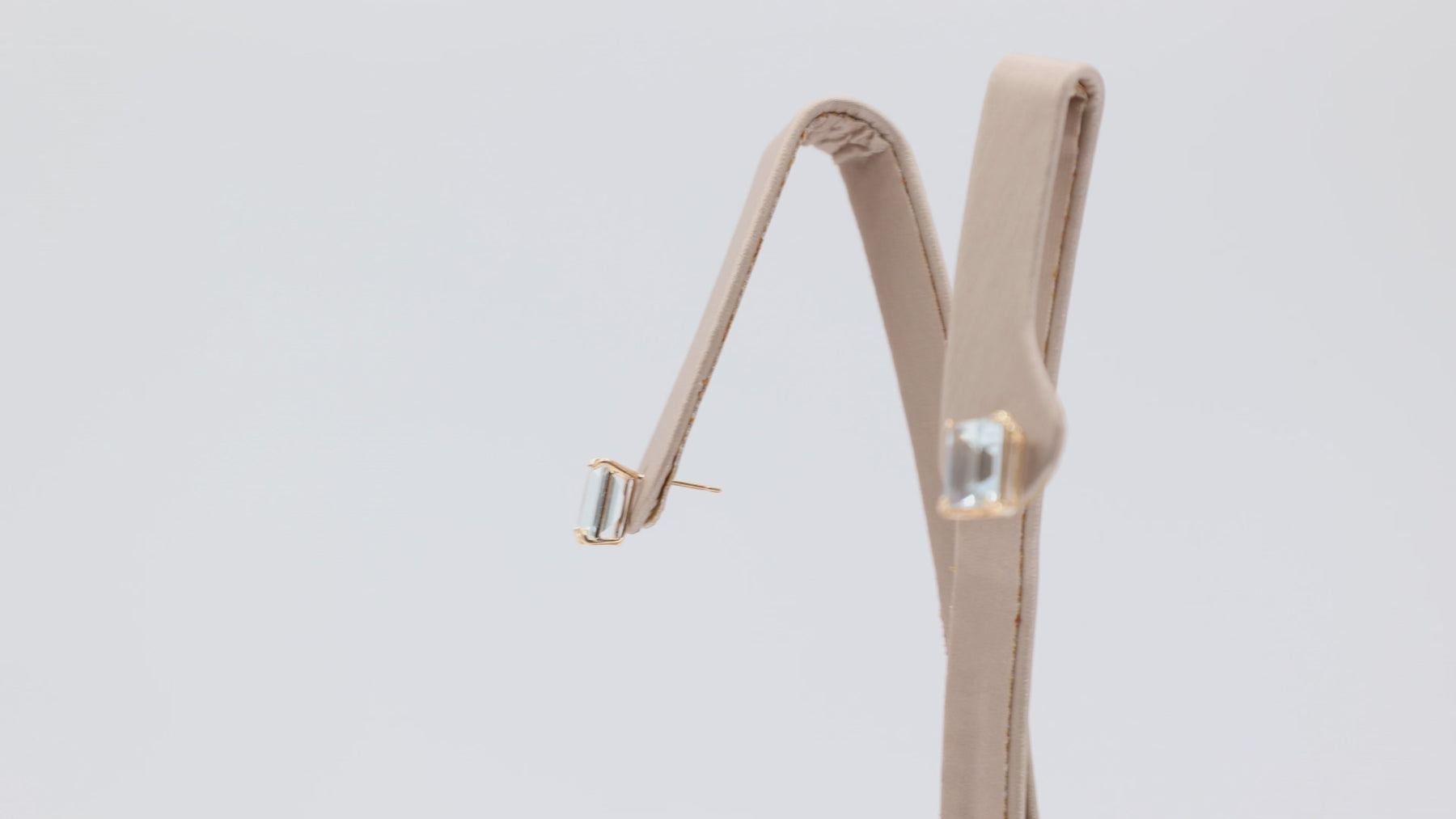 Display refined elegance with these 14k yellow gold stud earrings, each featuring a precisely cut 8x6mm emerald aquamarine. Known for its serene sea-blue hue, aquamarine offers a timeless touch of sophistication while its emerald cut enhances clarity and brilliance. Crafted in durable 14k gold, these earrings combine luxury with everyday wearability, making them a distinguished choice for those who appreciate expert craftsmanship and classic beauty.