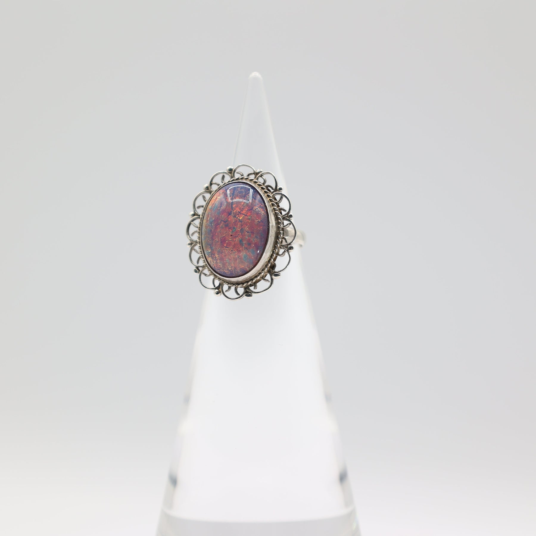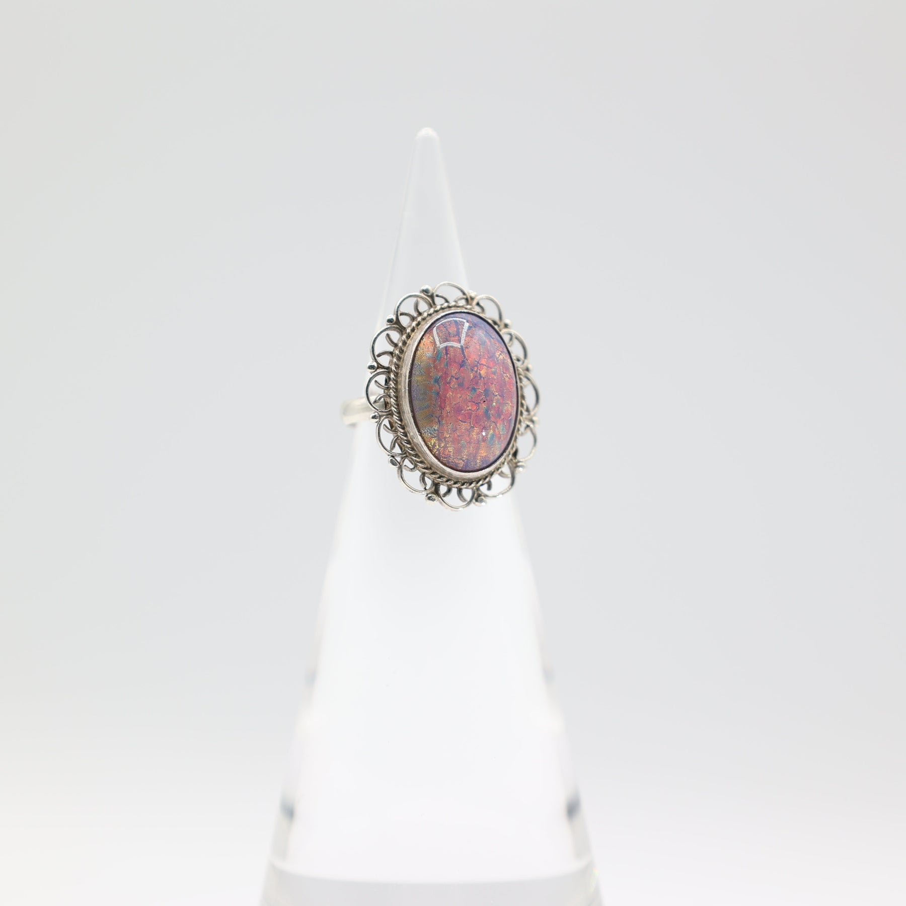 925 Silver Colorful Opal Filigree Ring — Size 6.25