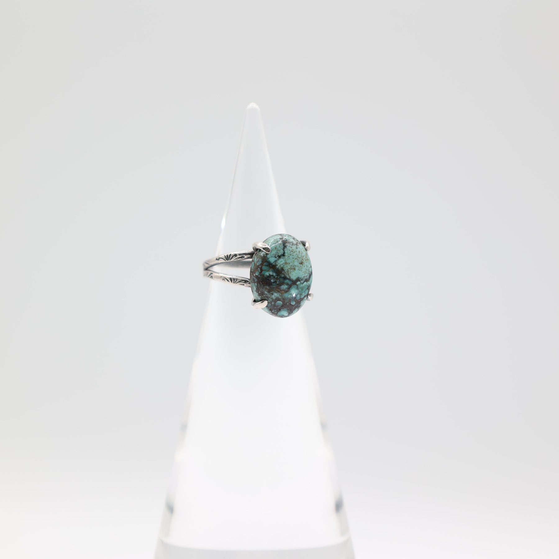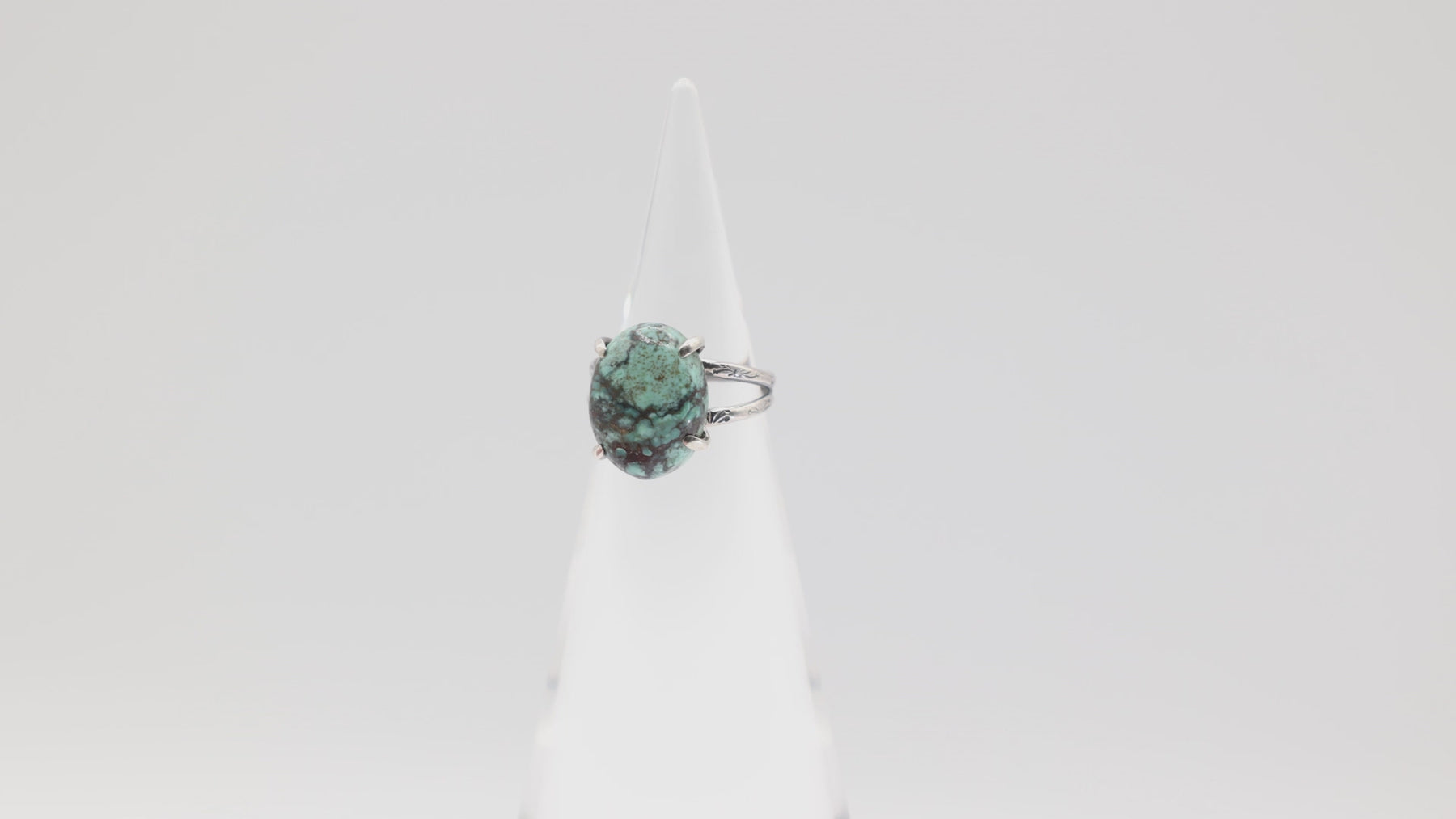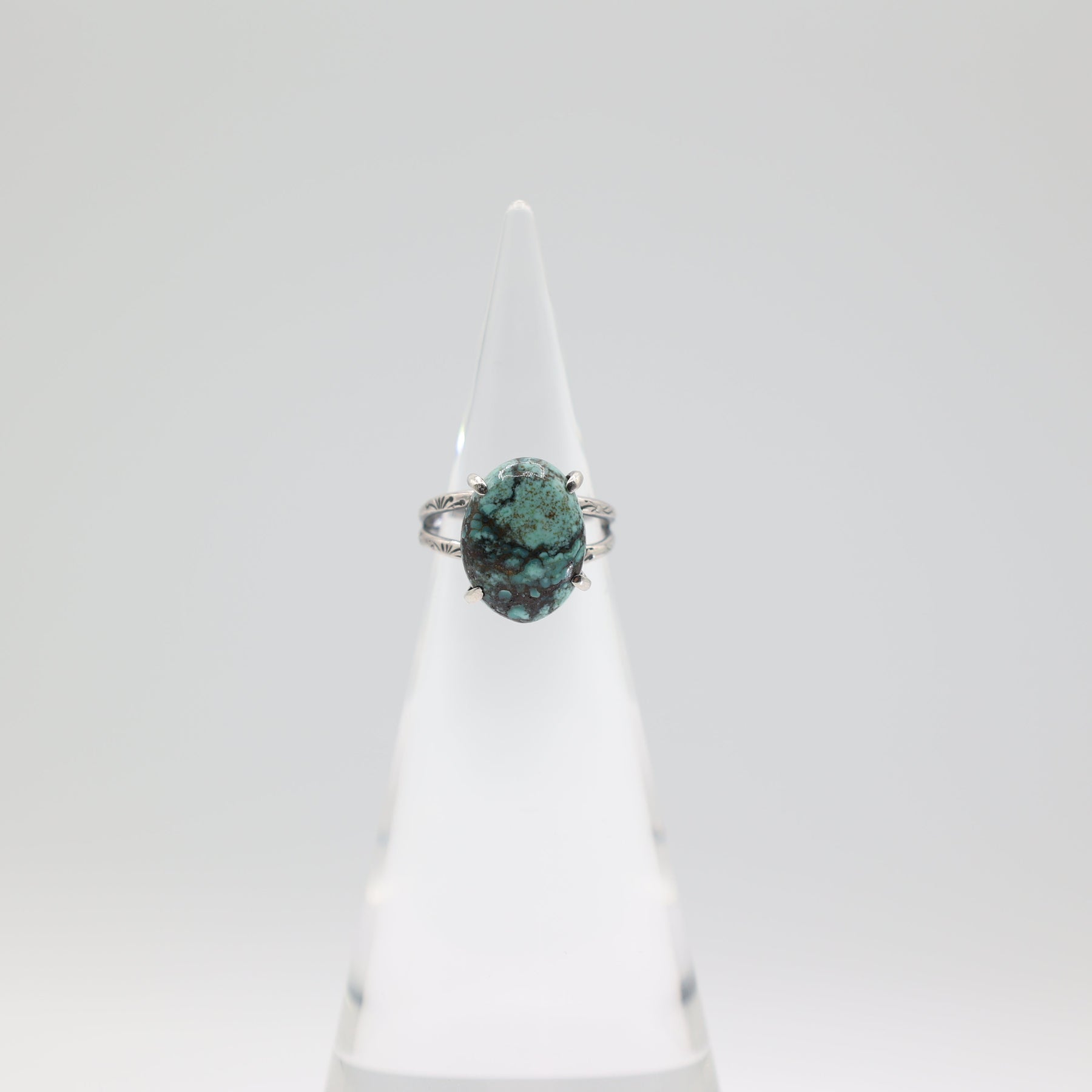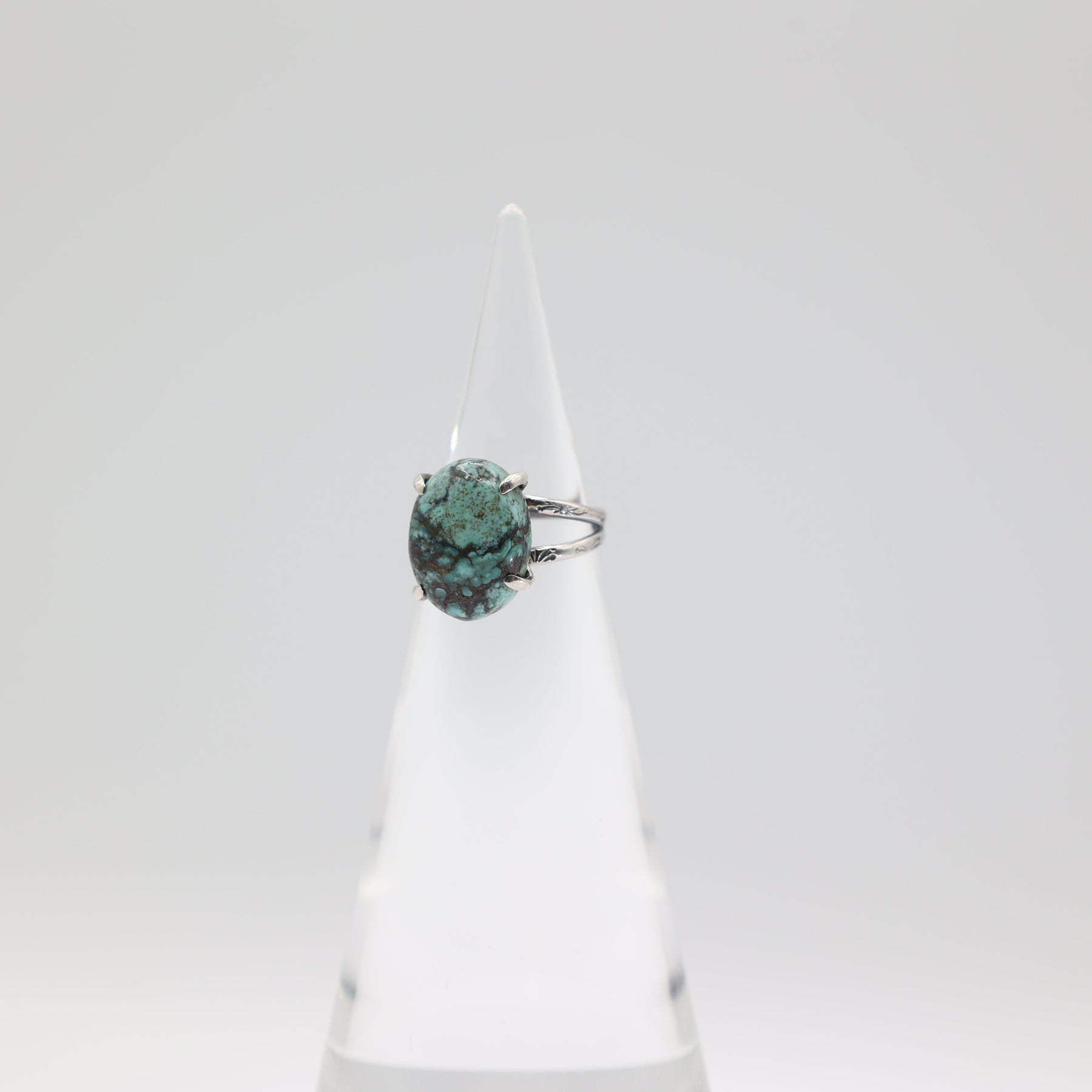 925 Silver Turquoise 15mm x 12mm 2 Band Ring - Size 6.5
