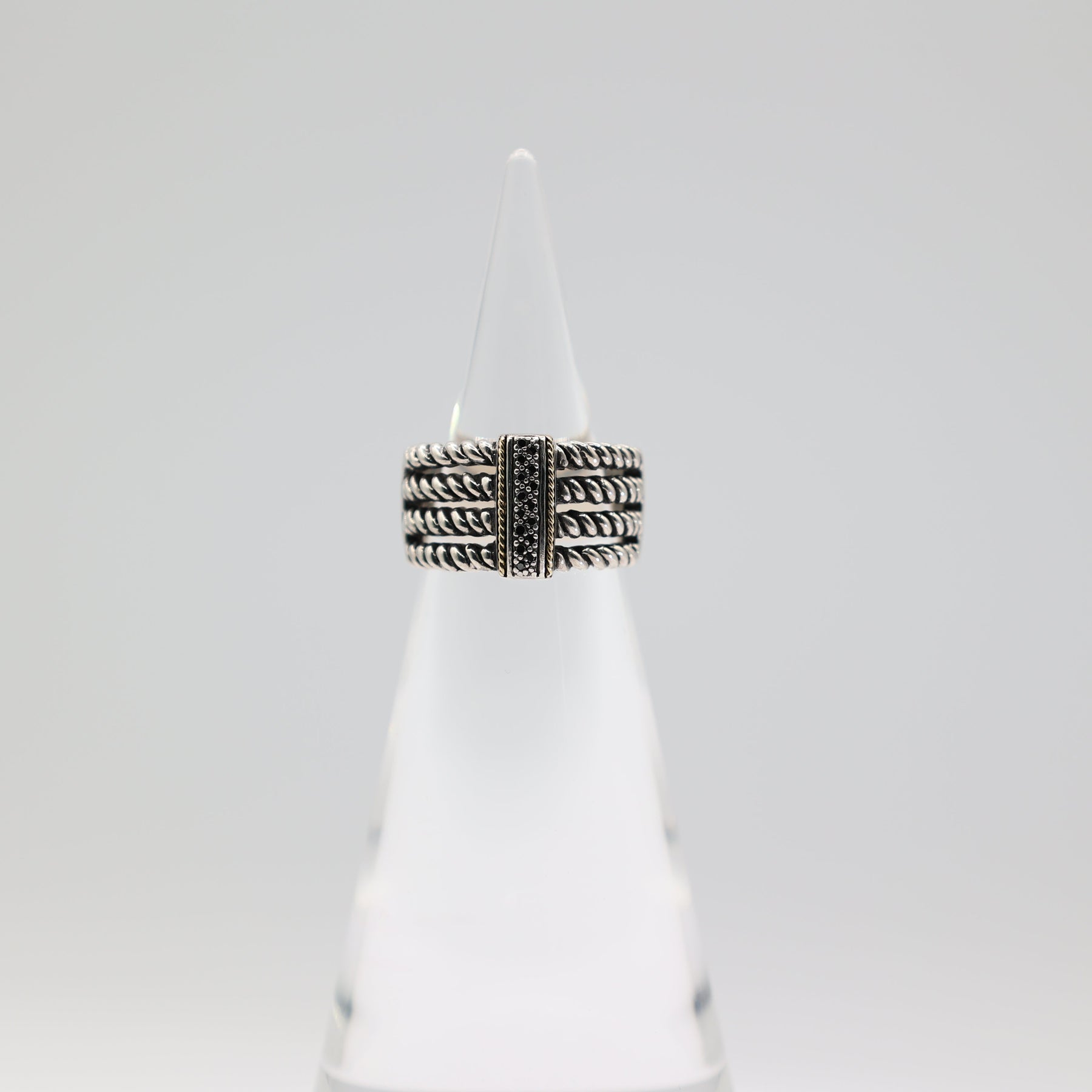 Sterling Silver Ring with 18K Gold Accents and Diamonds Size 7.5