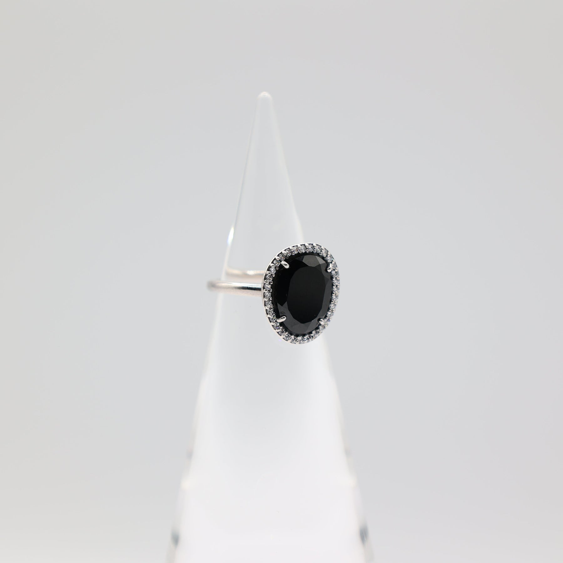 925 Sterling Silver Black Onyx & CZ Halo Ring Size 6.5