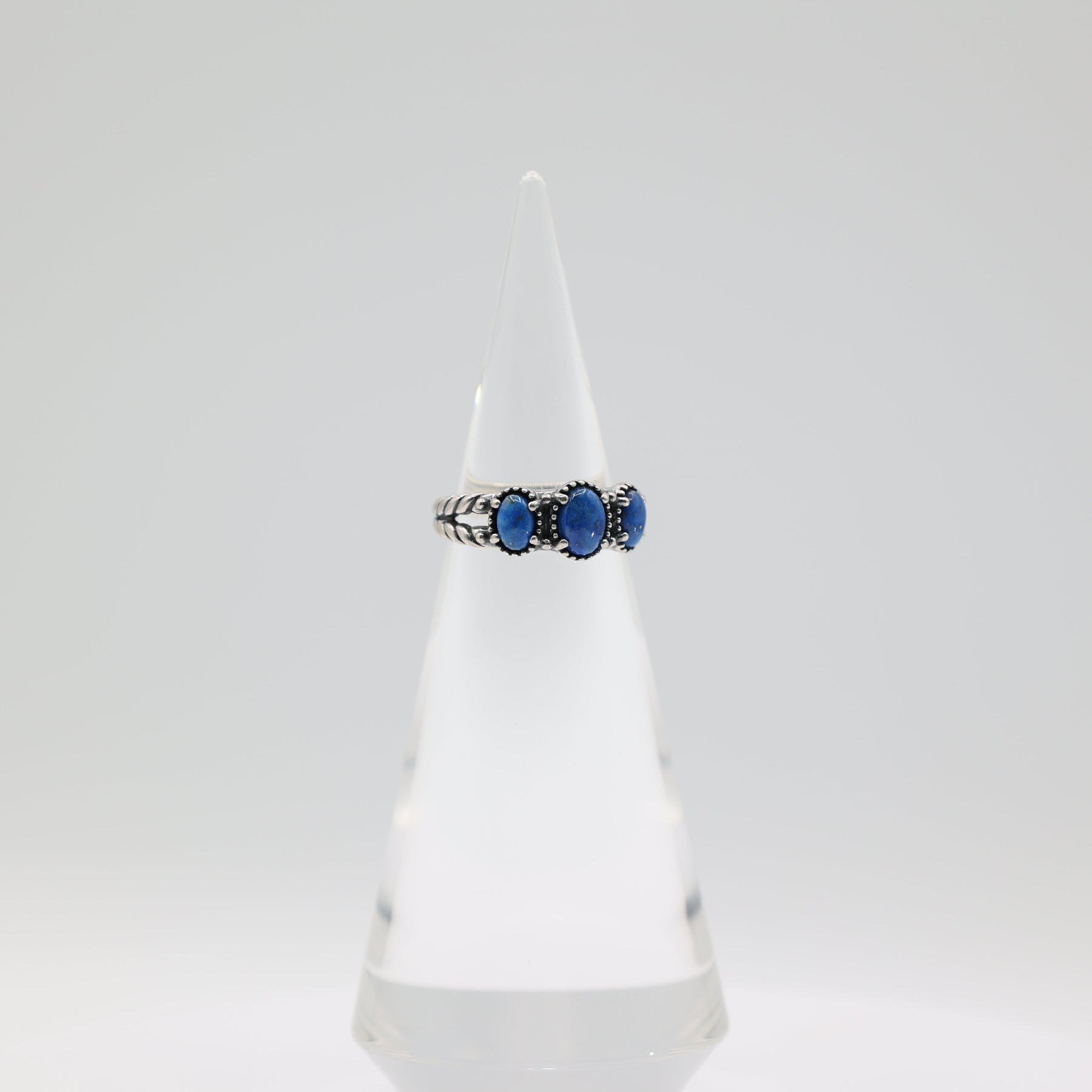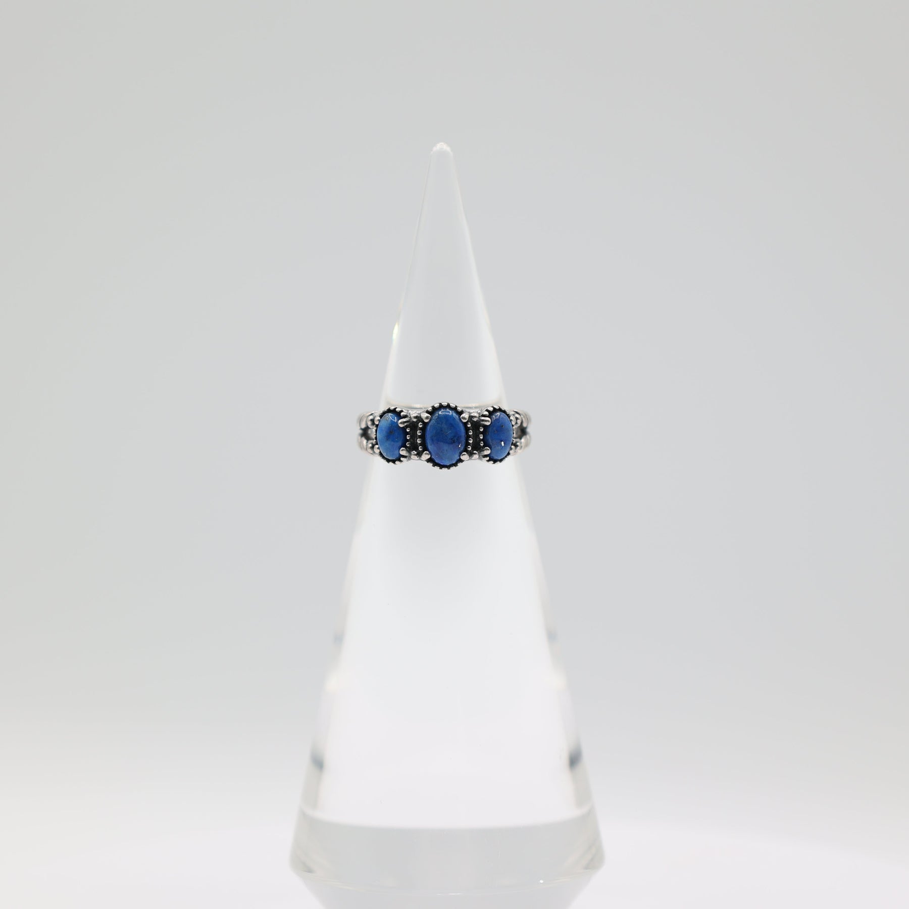 925 Sterling Silver Carolyn Pollack Lapis 3-Stone Ring Size 7.75