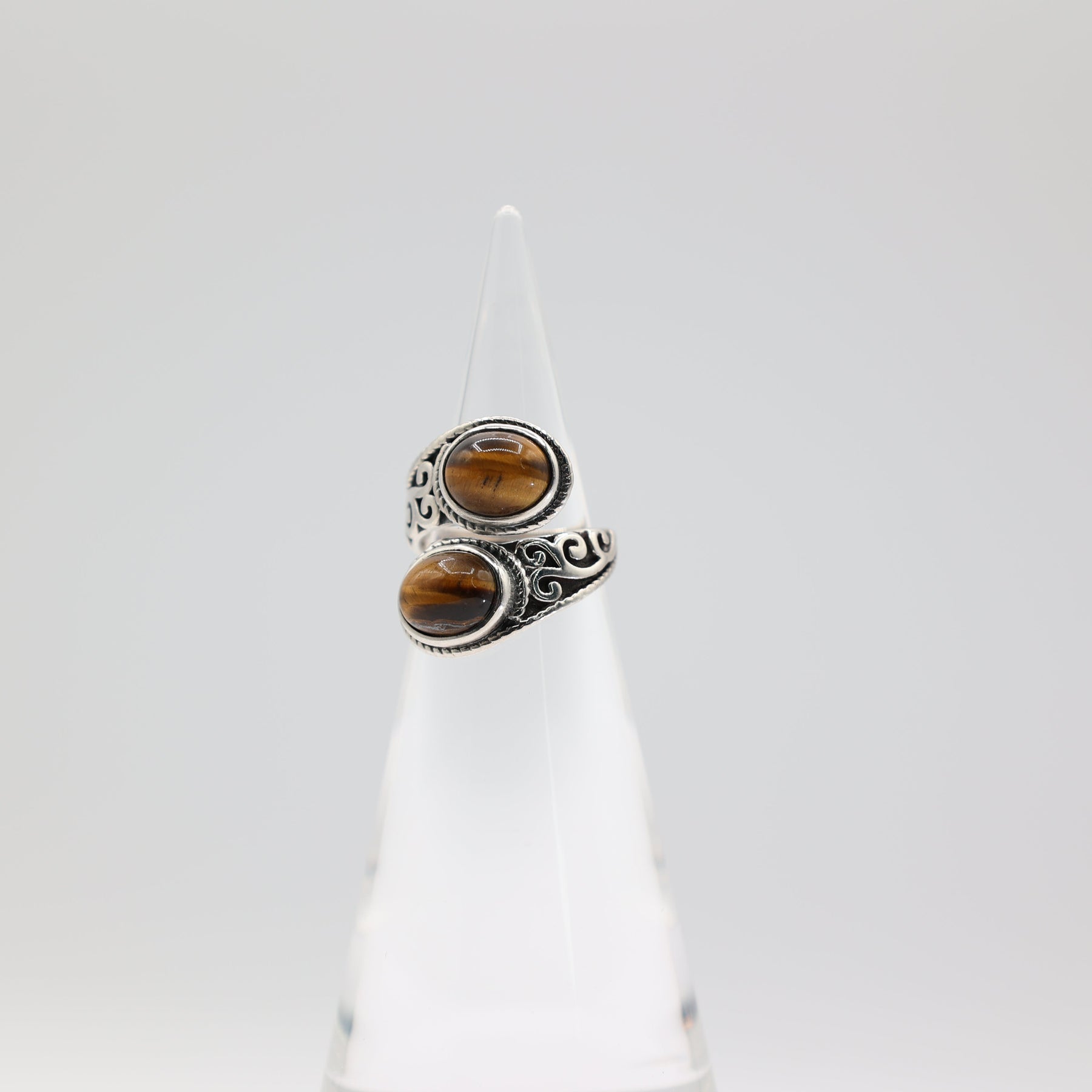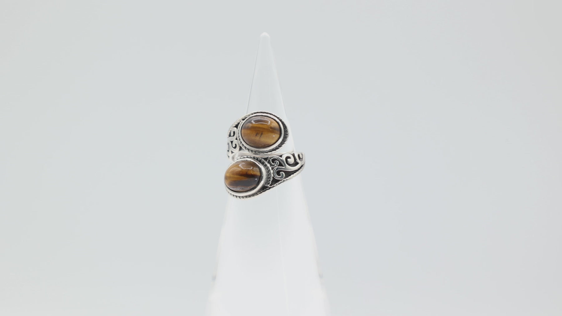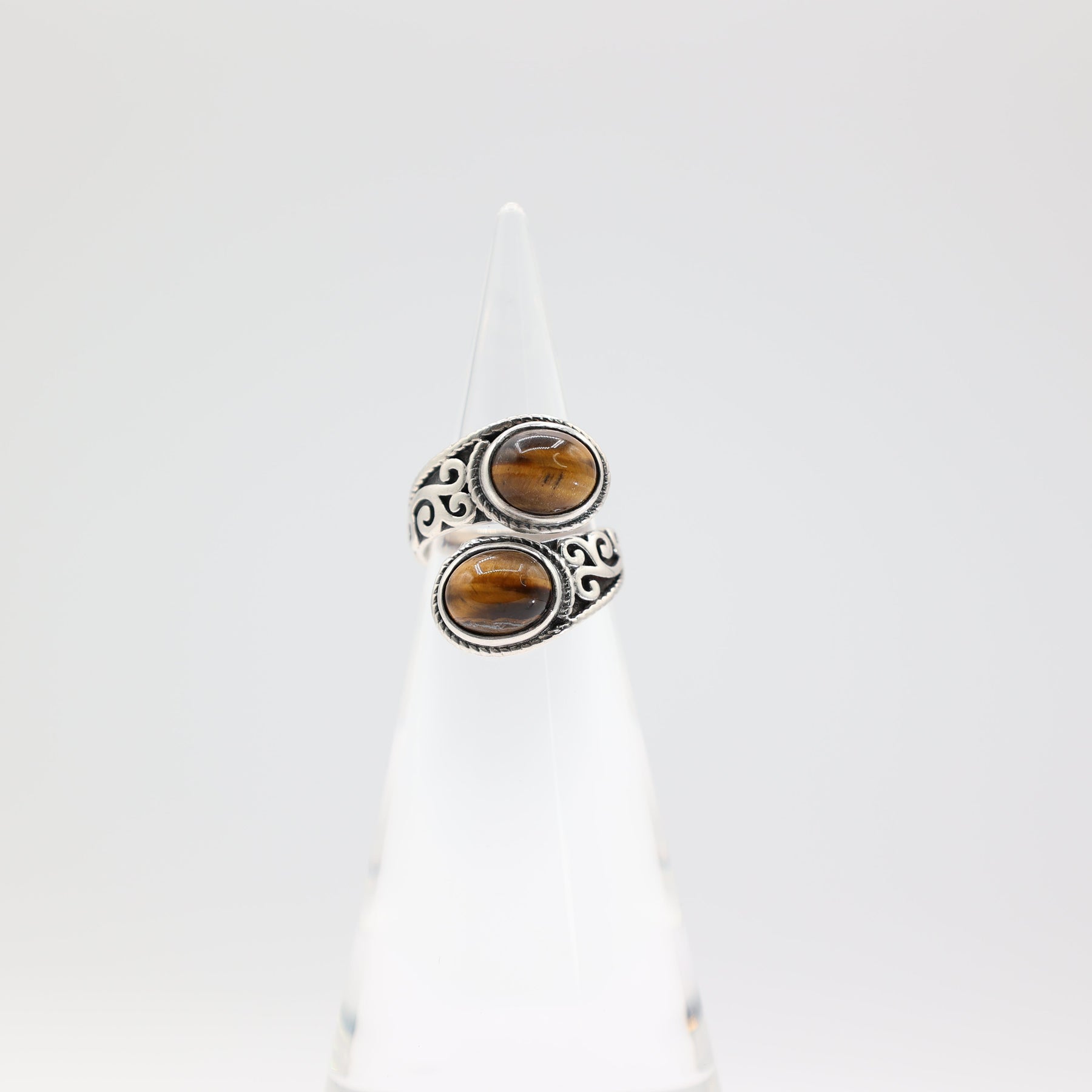 Crafted from 925 sterling silver, this ring features a sophisticated double tiger's eye stone design, offering both durability and striking visual appeal. Sized at 6.25, it combines timeless elegance with expert craftsmanship, making it a refined addition to any jewelry collection. The natural tiger's eye stones provide a warm, captivating shimmer, enhancing the ring's unique character and versatility.