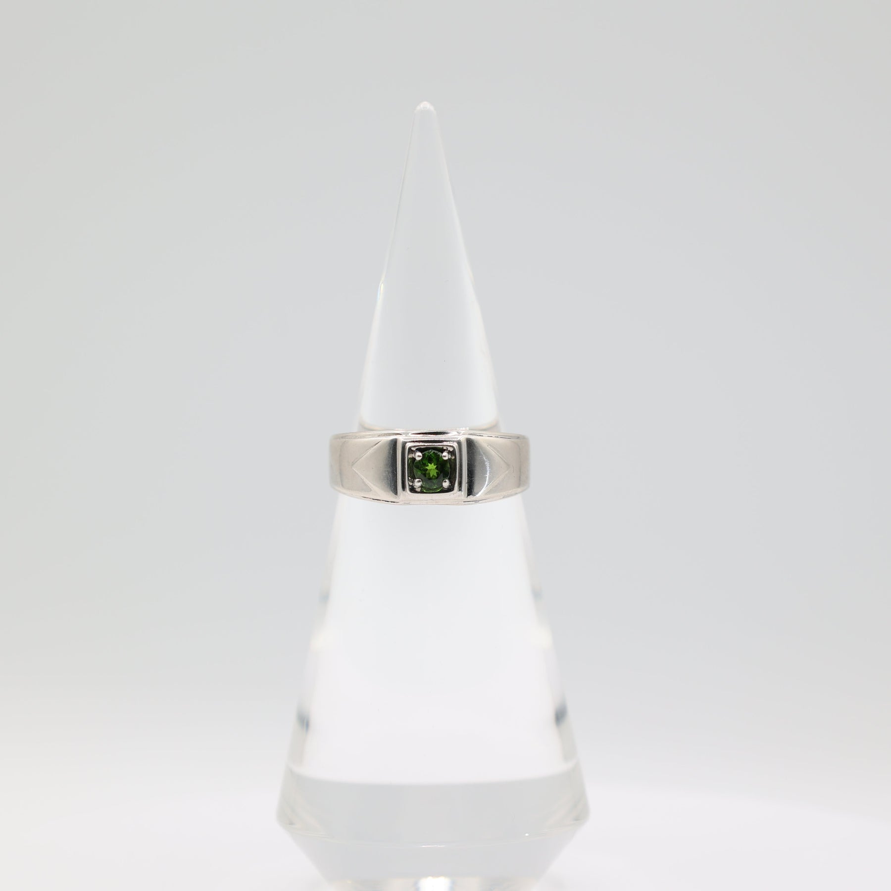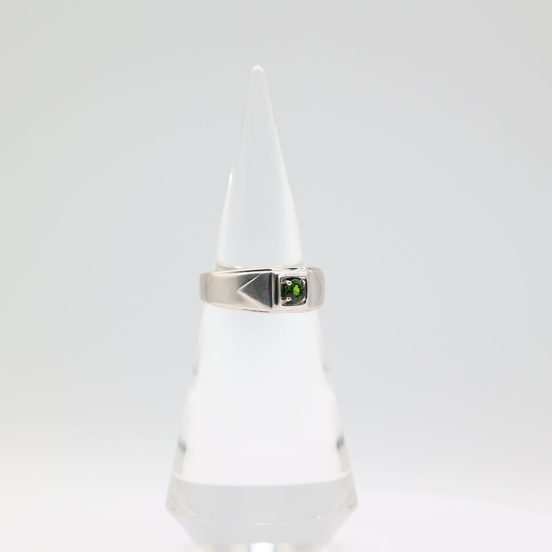 925 Sterling Silver Men's 4.5mm Round Emerald Stone Ring Size 12.75