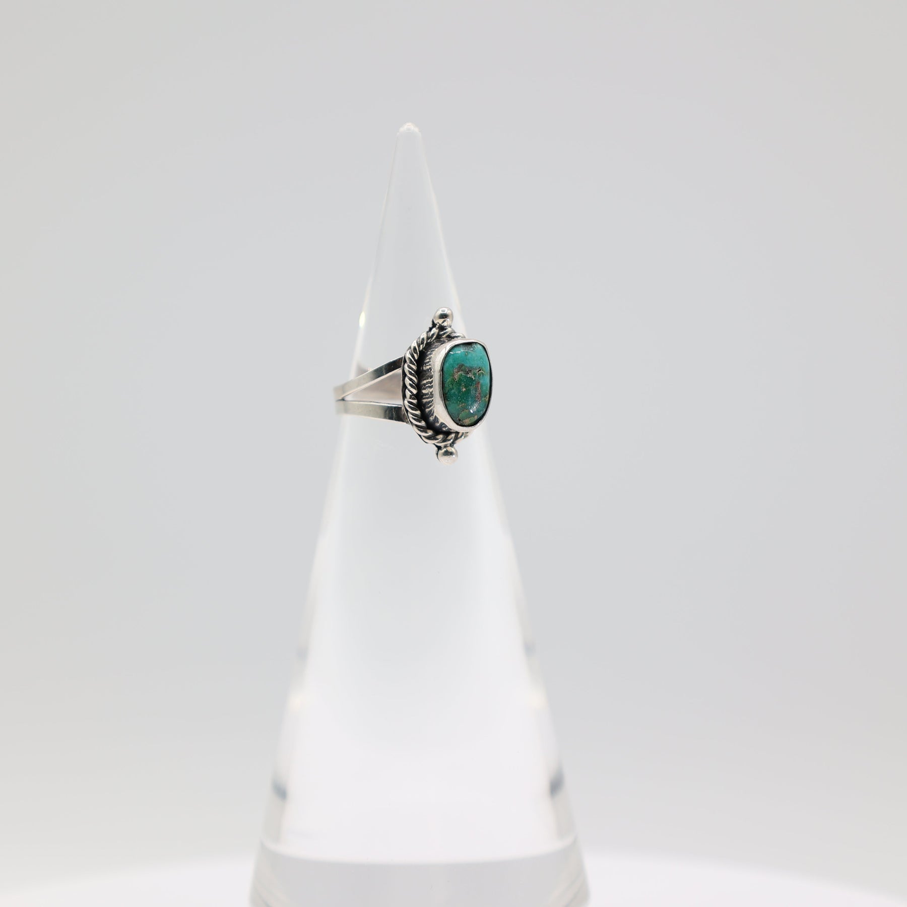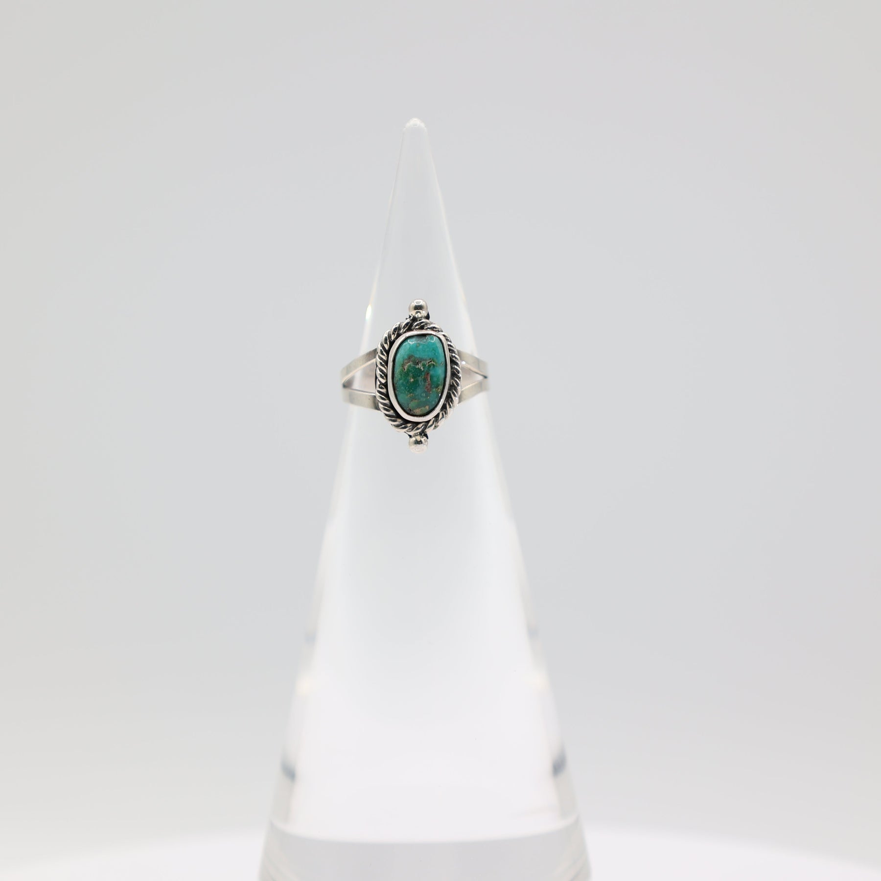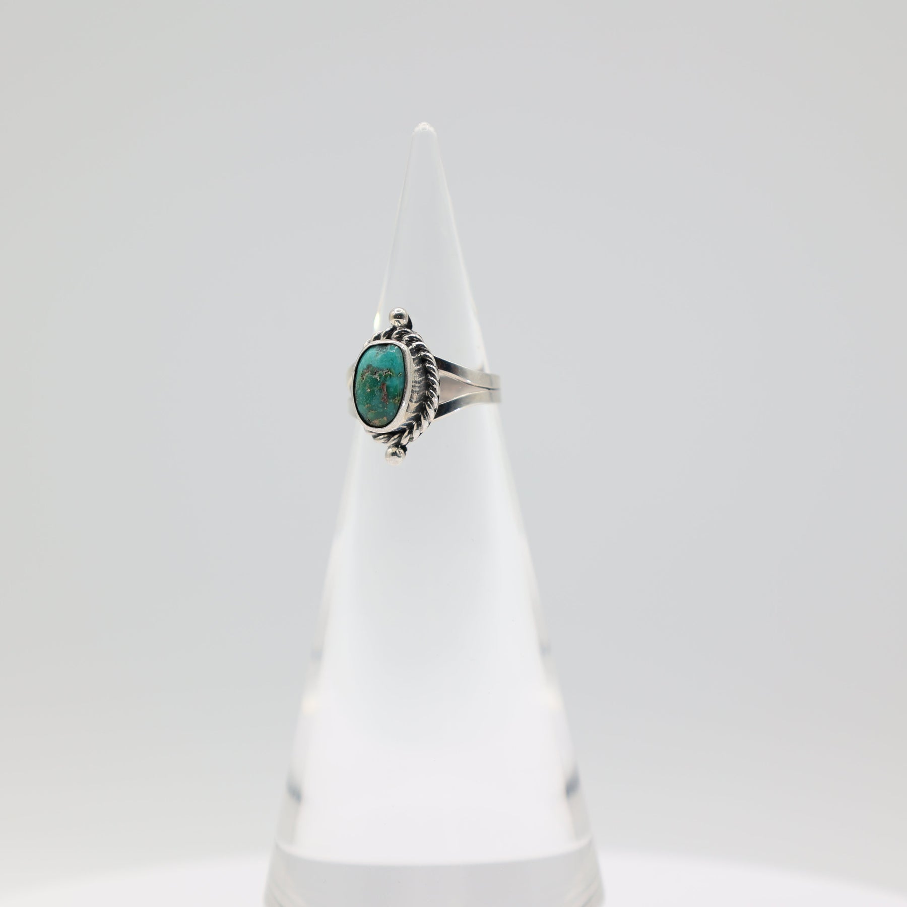 This exquisite ring showcases a vibrant turquoise stone set within an intricate braided halo design, crafted from authentic 925 sterling silver. The braided metalwork creates a sophisticated frame that enhances the stone's natural beauty while adding dimensional elegance to your hand. Sized at 5.5, this piece combines timeless craftsmanship with the calming allure of turquoise, making it an ideal choice for those who appreciate quality materials and refined design. Perfect for everyday wear or special occasions.
