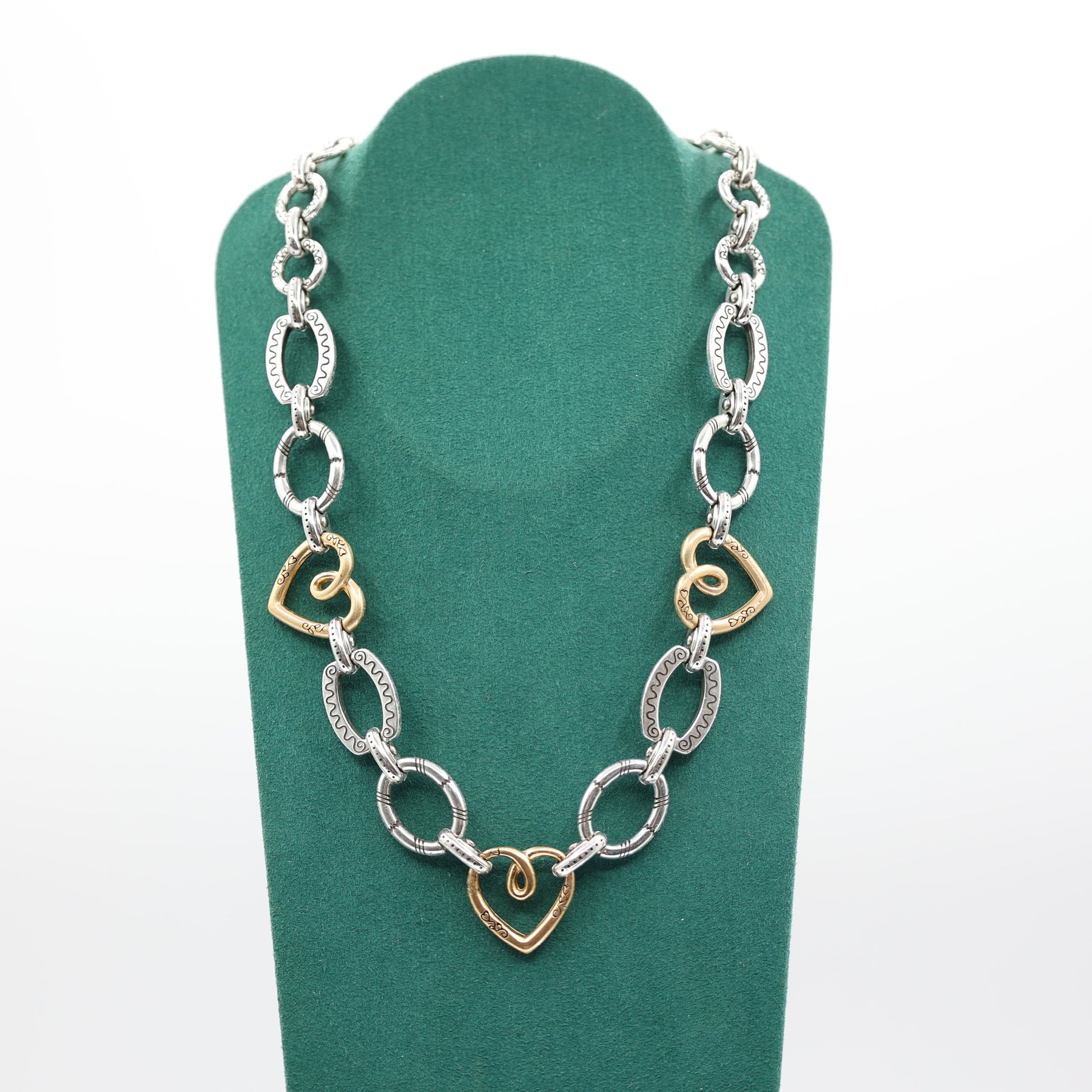 Elevate your collection with the Brighton Two Tone Heart Link Chain Necklace, expertly crafted to blend versatility and elegance. Its distinct two-tone design offers a subtle contrast that complements any outfit, while the heart-shaped links add a timeless touch of sophistication. Perfect for layering or wearing solo, this necklace is a refined accessory designed to enhance your style with understated grace.
