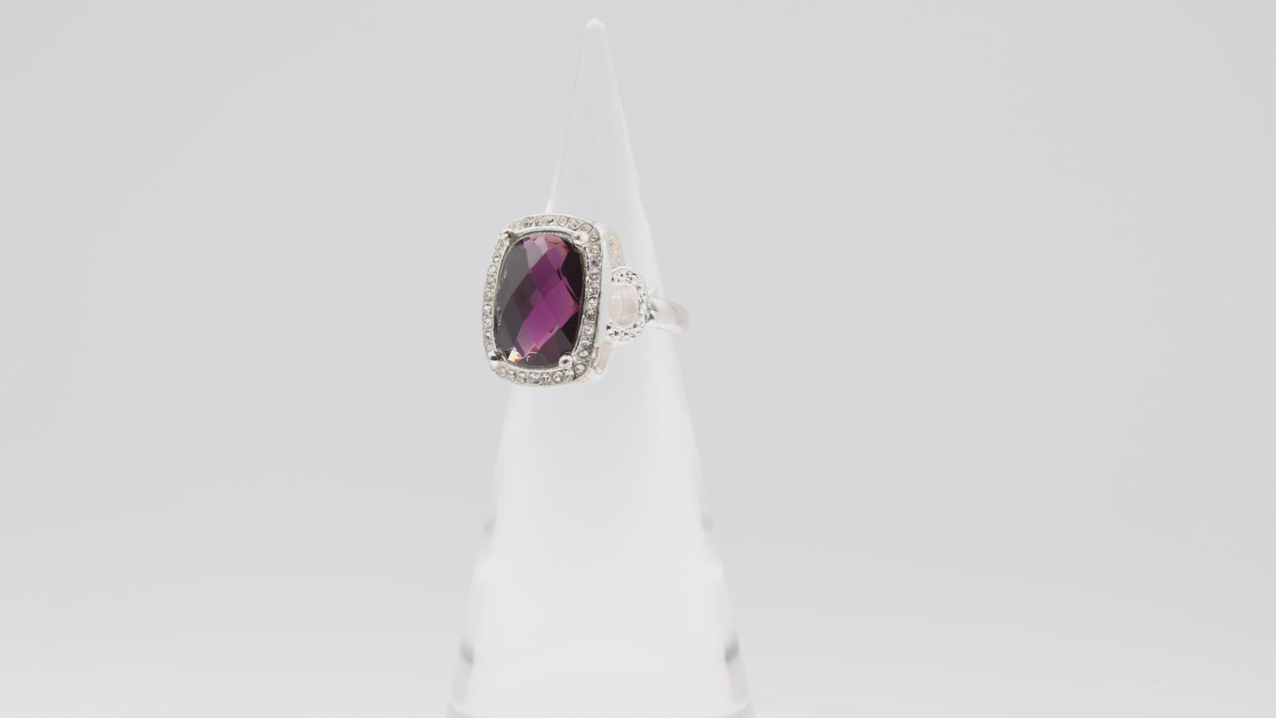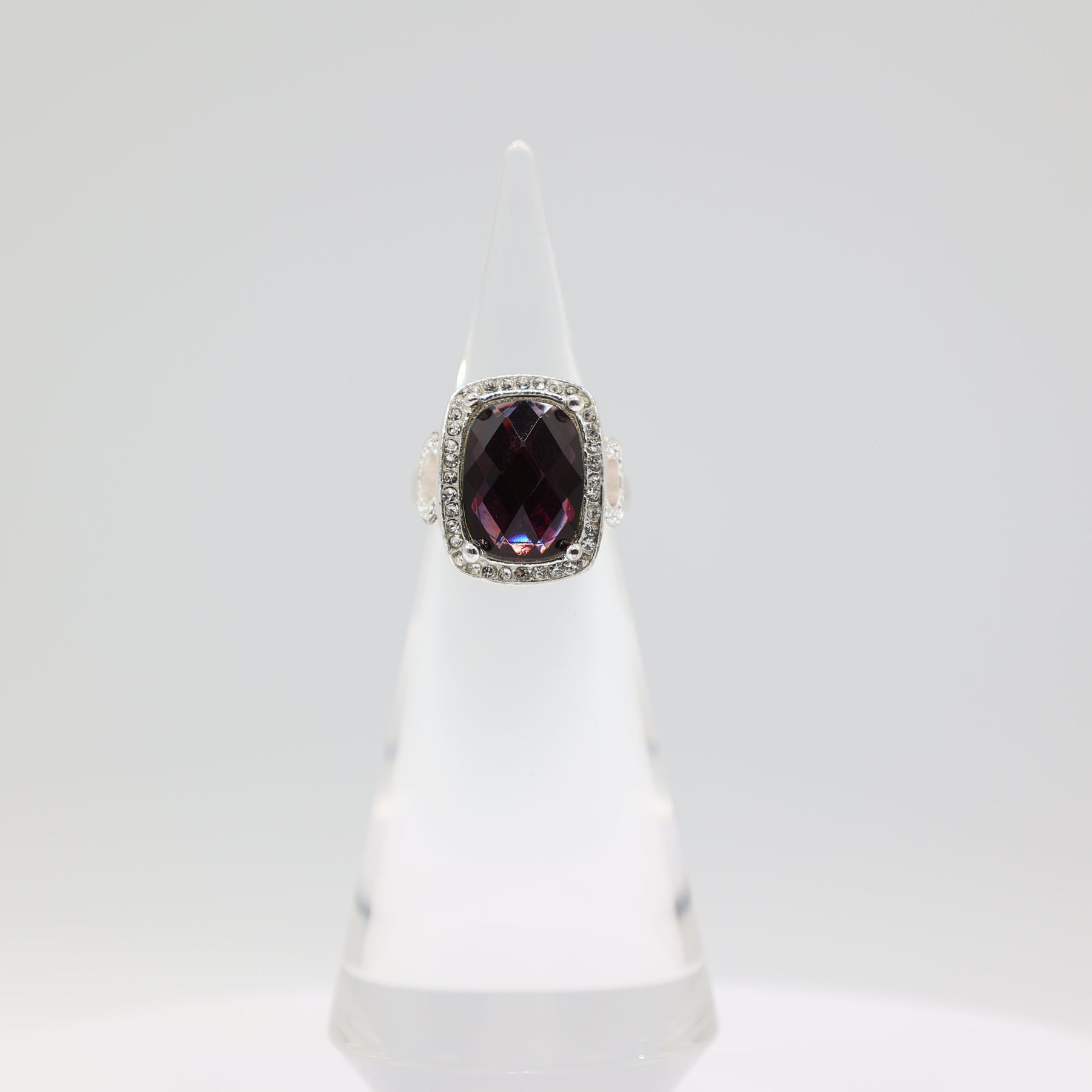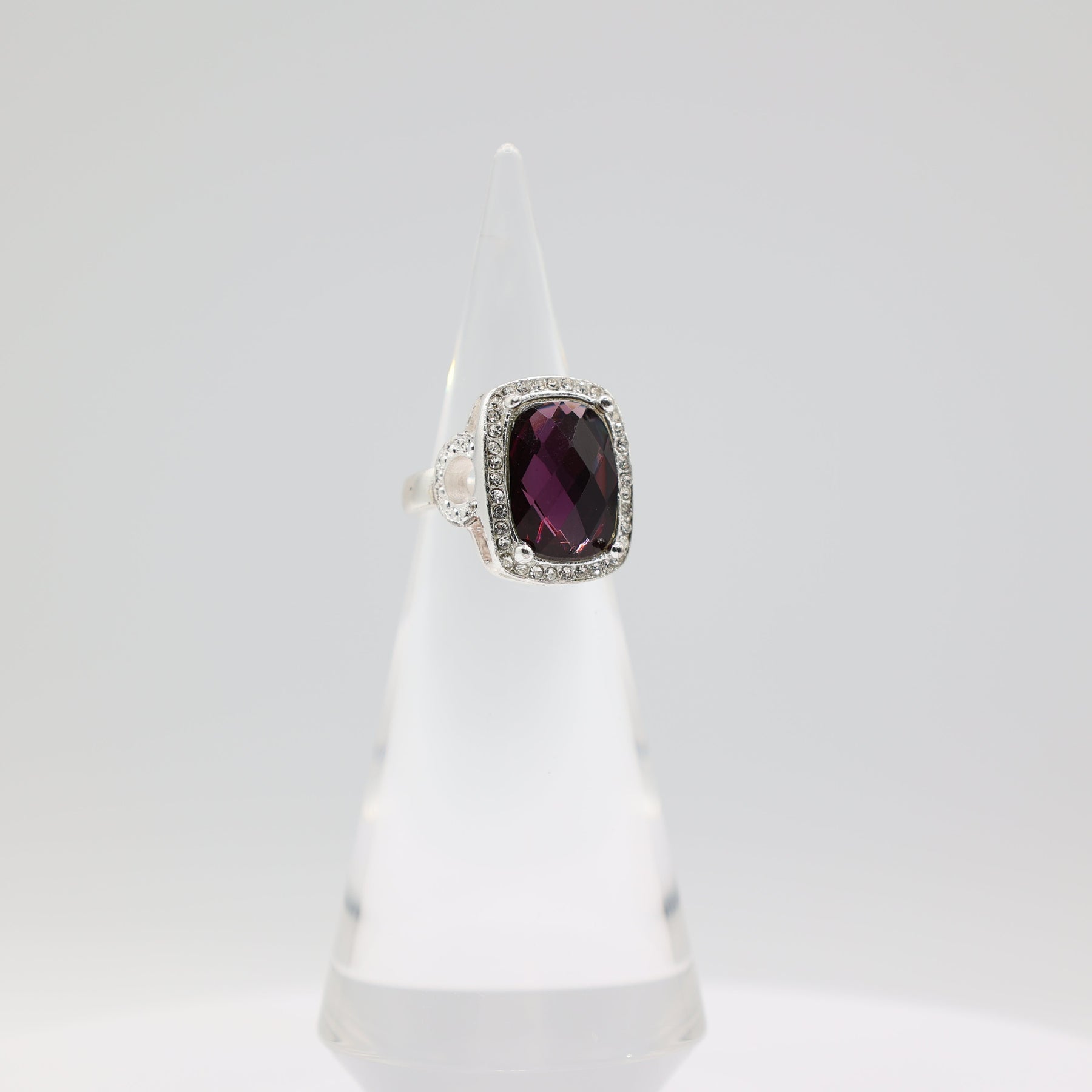 Costume Silver Tone Purple Stone with Rhinestone Halo Ring Size 7.5