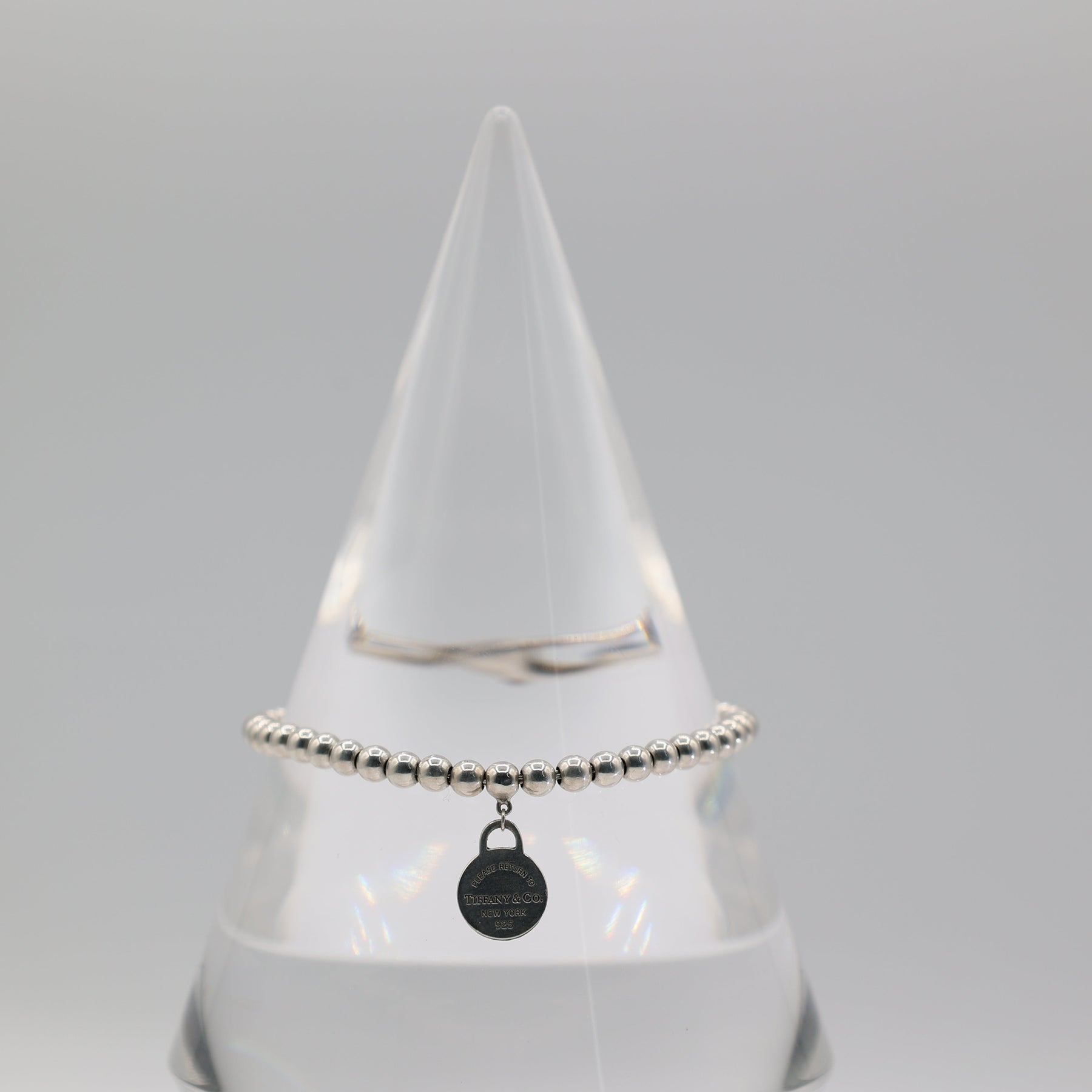 Tiffany And Co 925 Sterling Silver Beaded 4mm Mini Round Tag 7 Inch Bracelet