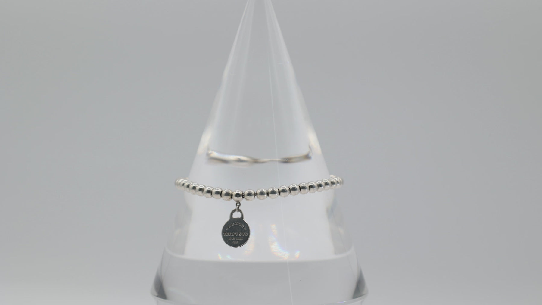 Delicately luminous and effortlessly versatile, this beaded bracelet from Tiffany & Co is crafted in 925 sterling silver. The design features polished 4mm beads that shimmer with every tilt of the wrist, threaded into a fluid silhouette that sits comfortably at 7 inches. A mini round tag charm adds a discreet, iconic detail that lets the piece feel instantly refined, whether worn alone or layered with other bracelets.