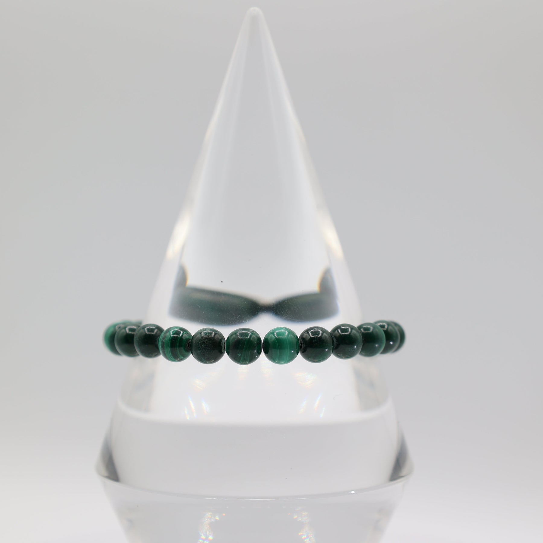 - Genuine malachite beads with natural banding that creates a distinctive, elegant look.