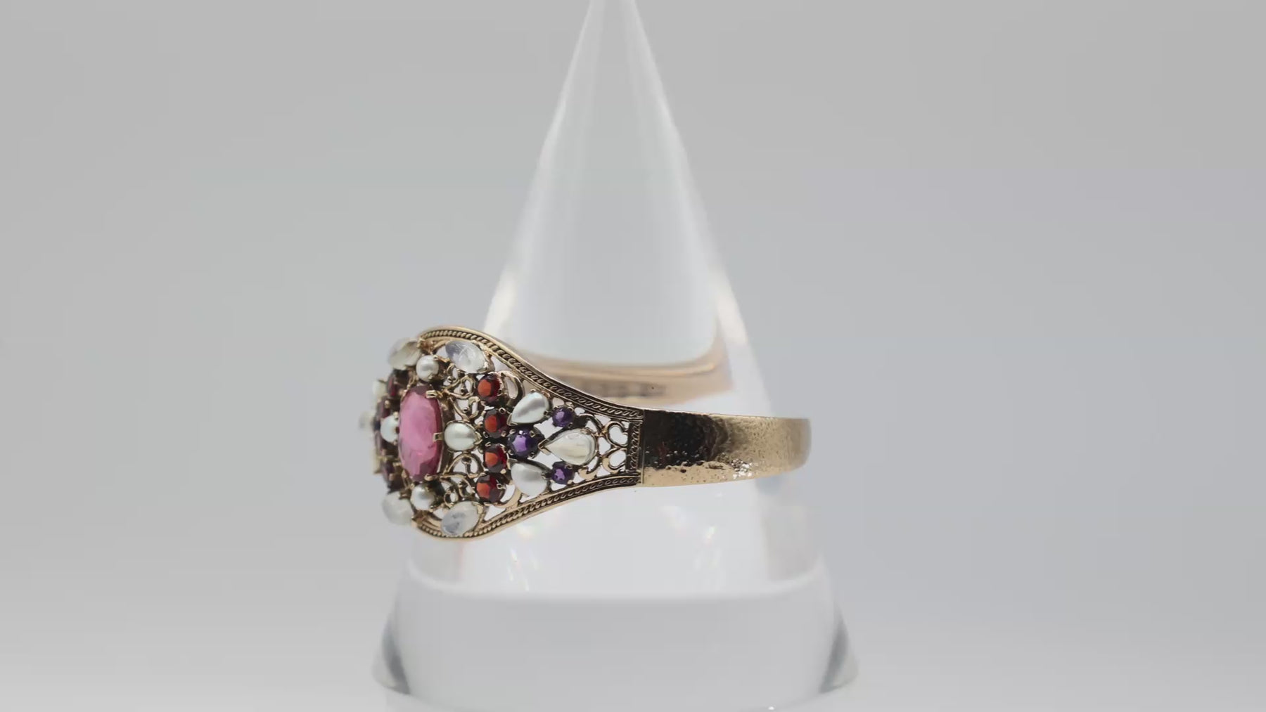 Gold Toned Bangle With Pink Red And Purple Rhinestones